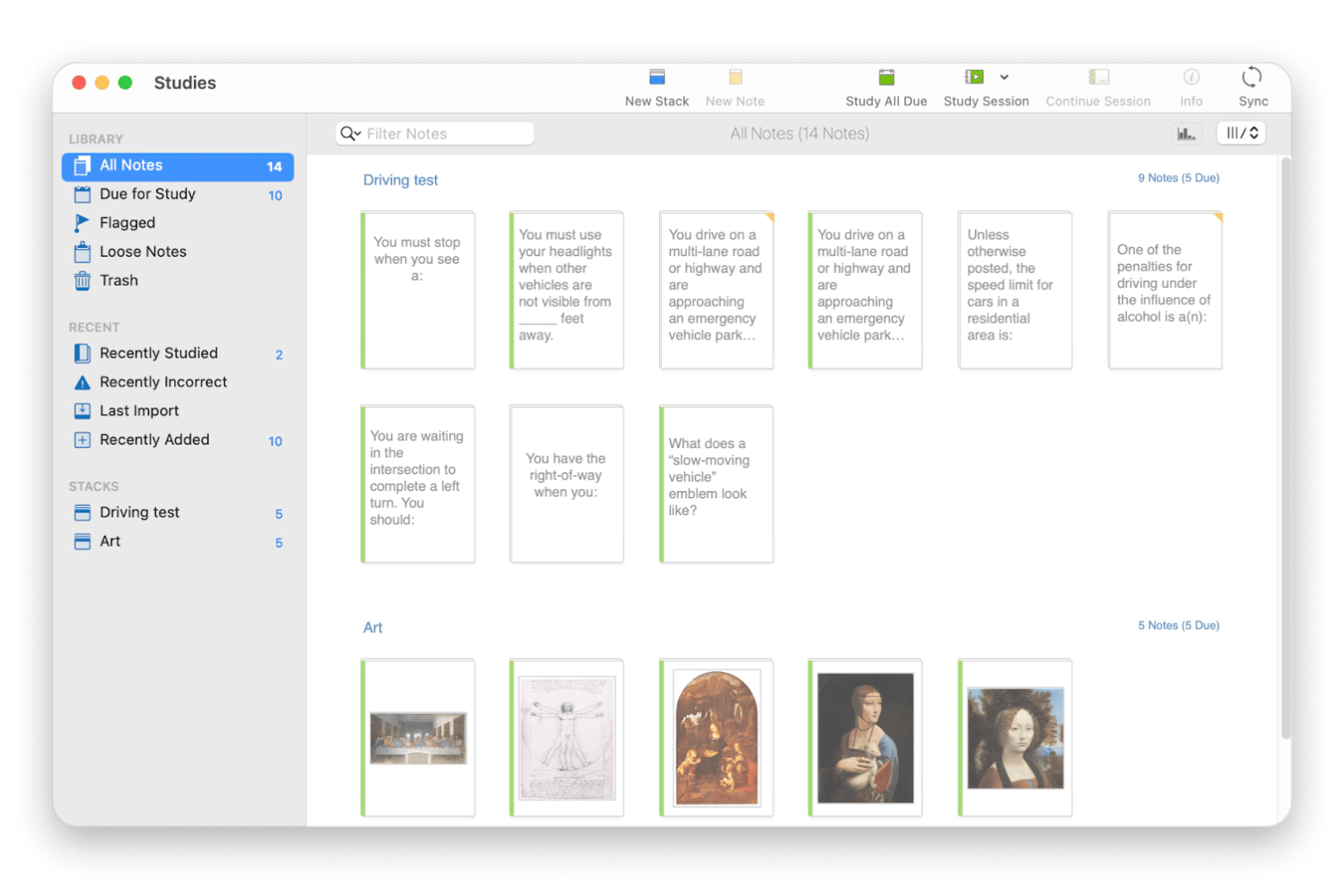 | Studies | Flashcards + Exam prep | ✅ | ❌ | ❌ | CSV, TSV, PDF, Archive | ✅ | From $9.99/mo +tax via Setapp |