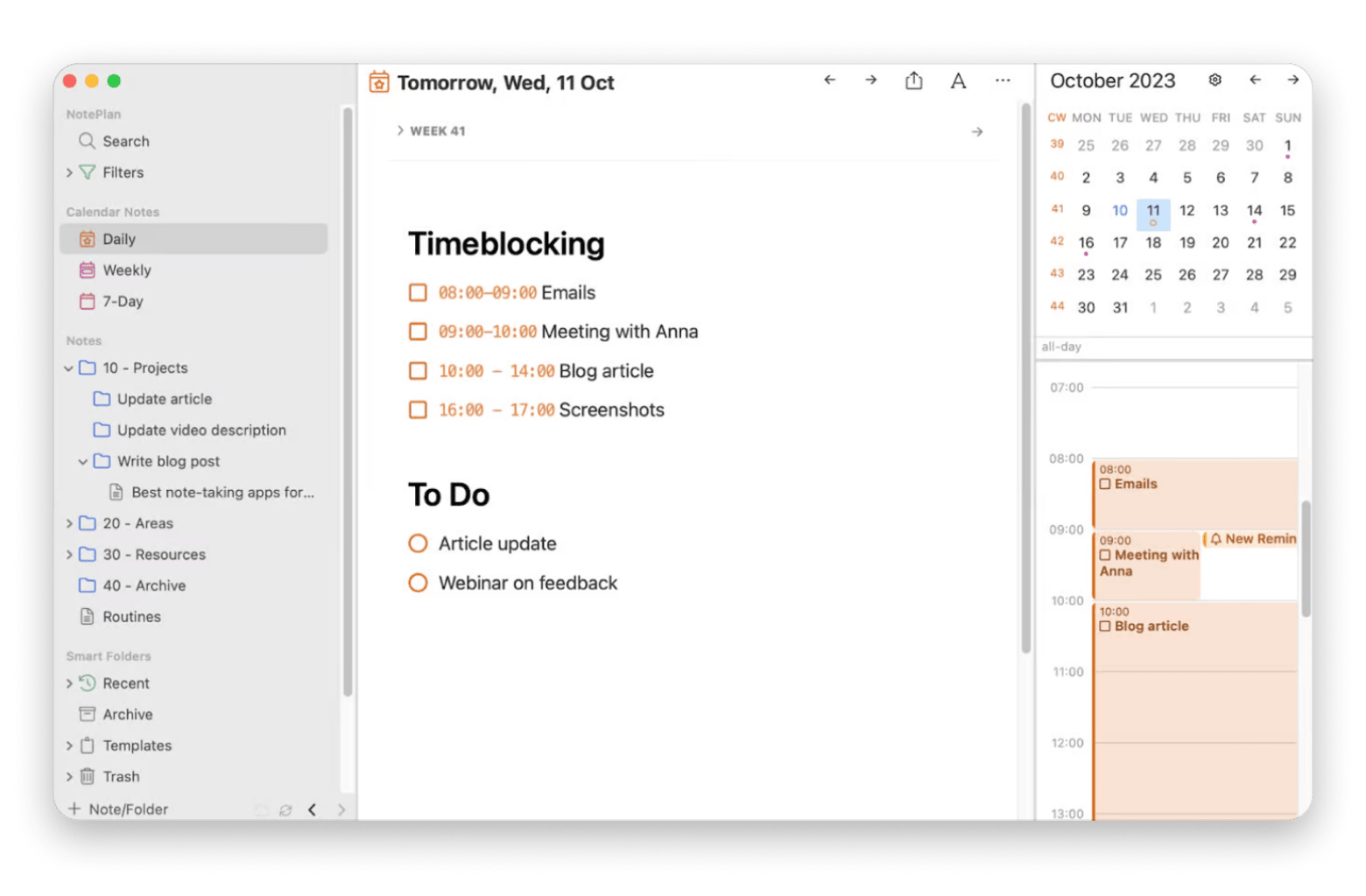 The best starting place is always Apple Notes, as it's already on your Mac and iPhone. It's actually quite good for everyday note-taking. But if you need more structure for work-related notes and to-do lists, NotePlan is the natural step forward. It feels native to the ecosystem and also has a mobile companion that syncs via iCloud.