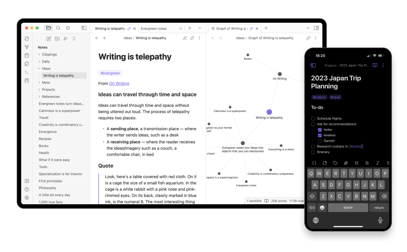 The next Evernote equivalent for Mac on our list is Obsidian, the app that's all about connections. If you're someone who loves to see the relationships between your ideas, this might be your perfect match. Rather than having notes simply stored in folders, you can link them directly together. This is fantastic for research or when you're trying to develop a large concept.