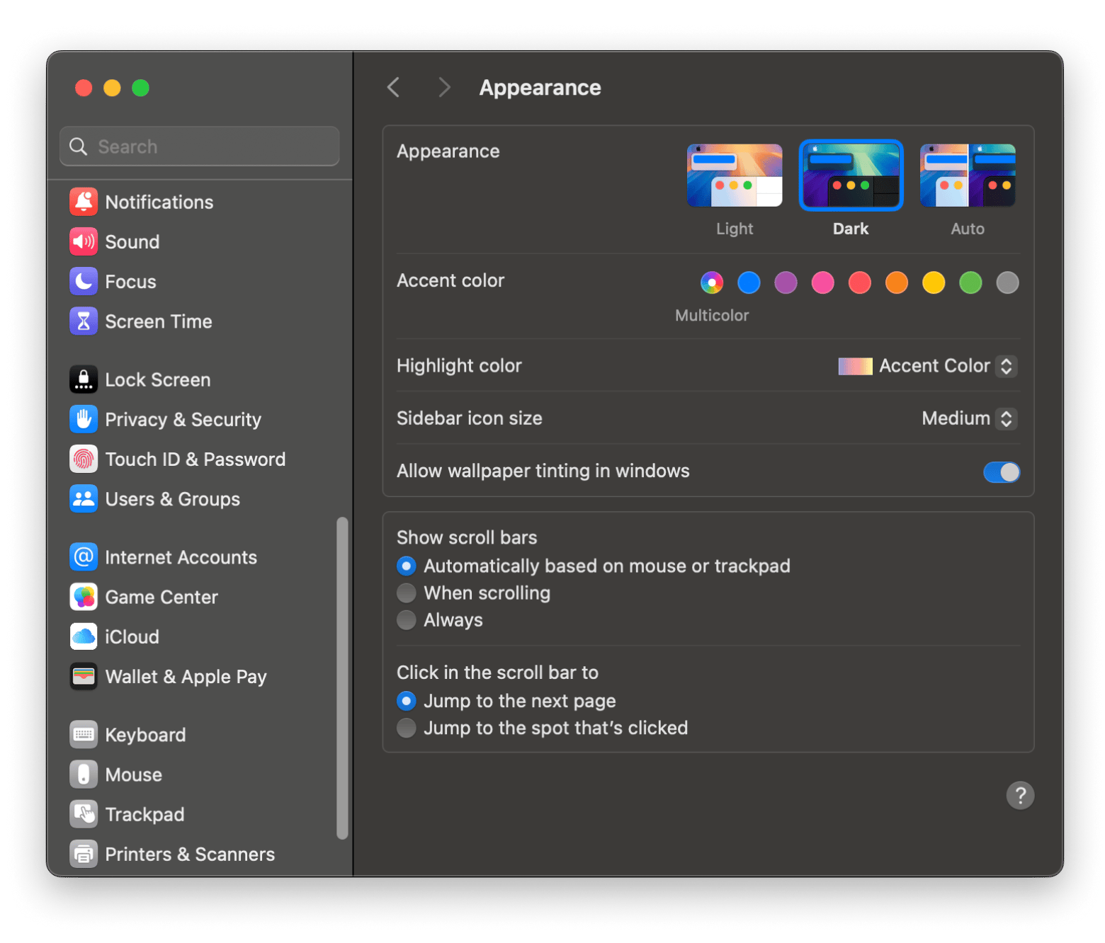 - Click Dark under the Appearance section.