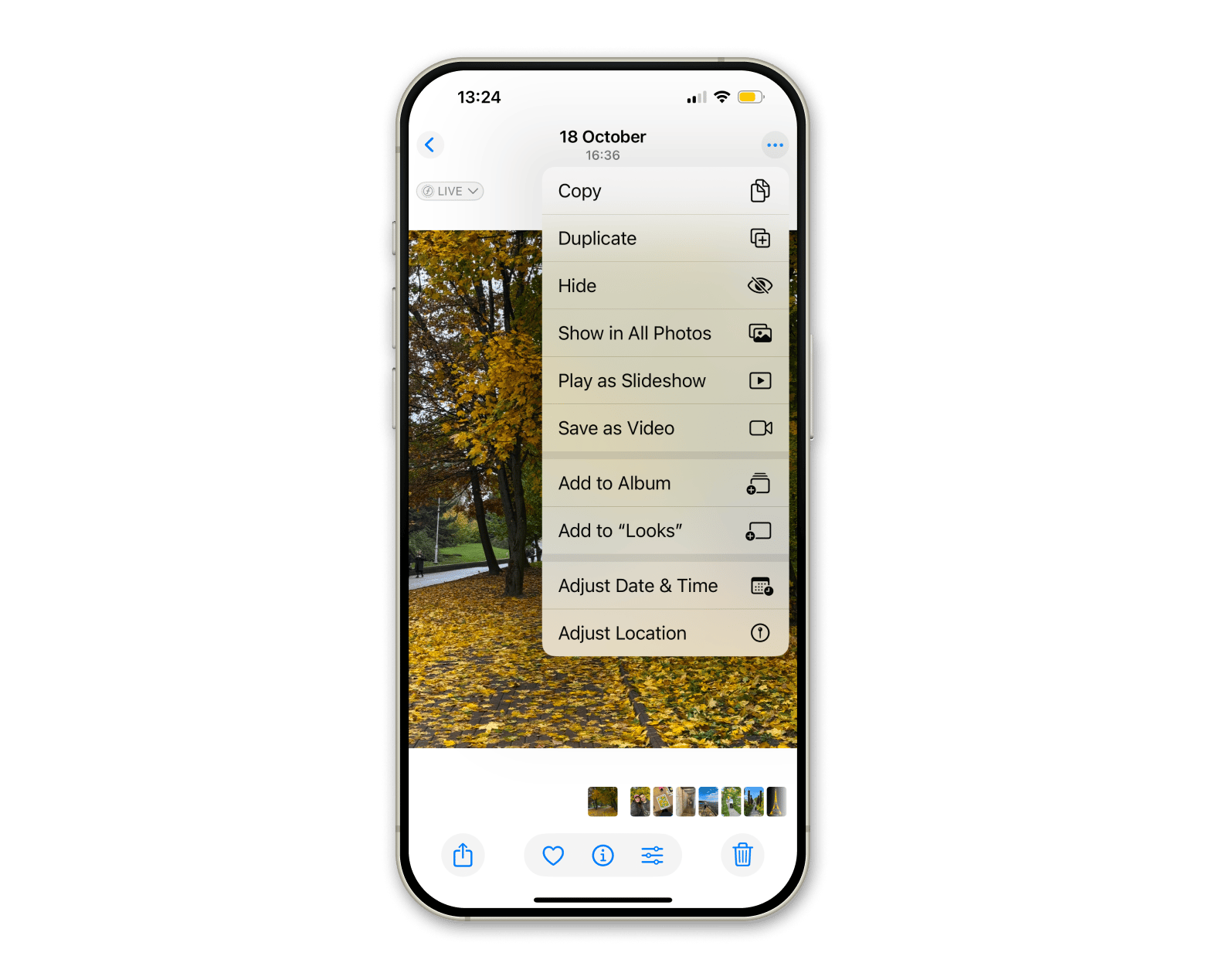 Confirm it’s a Live Photo: Open the image, then touch-and-hold. If nothing moves, the file might be a regular photo.