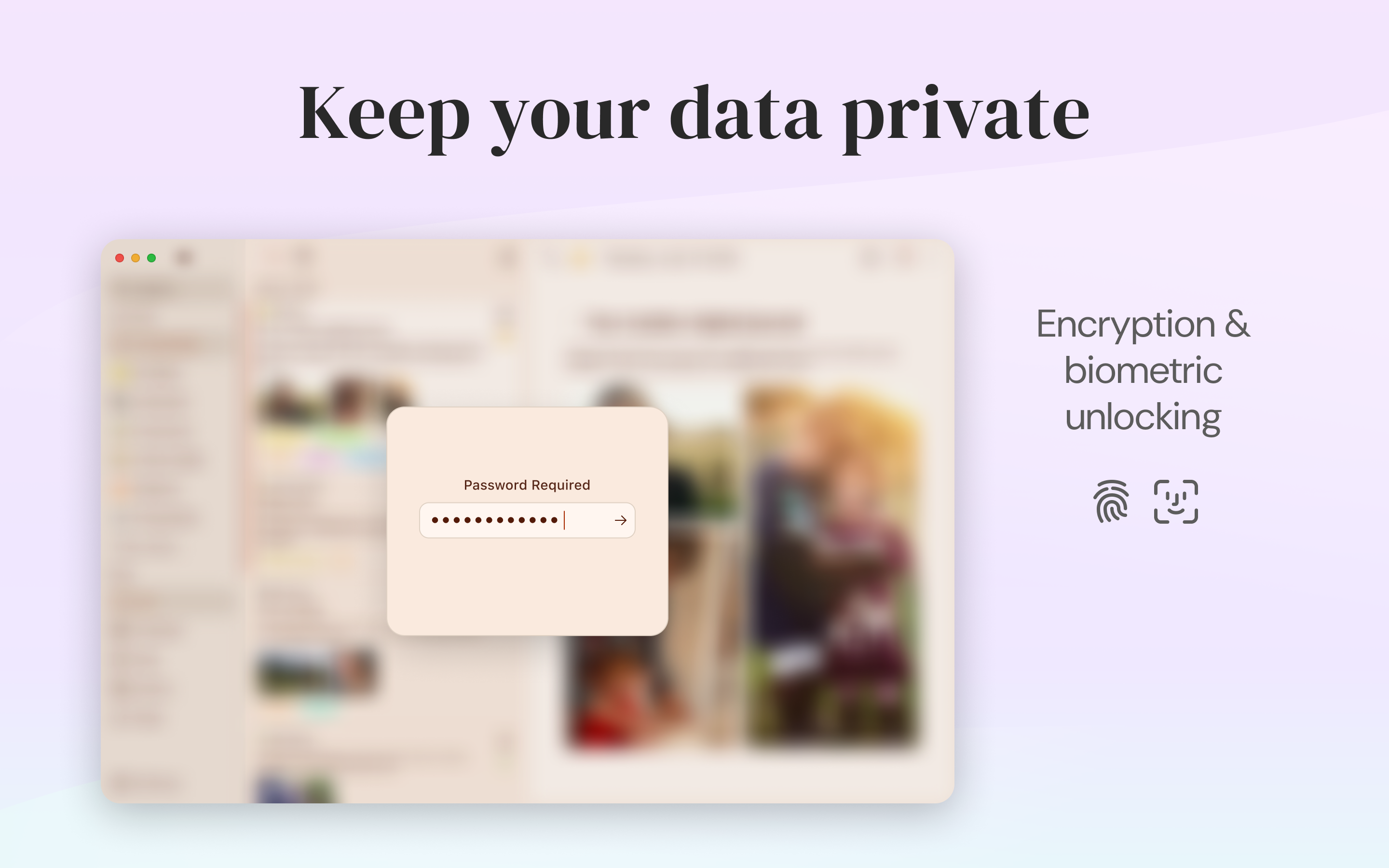 The last thing you want is someone infringing on your privacy. This is why instead of keeping your diary under the bed, put it in one digital spot on your Mac. In Diarly, all the entries you create can be encrypted, so that no one can ever peek inside.