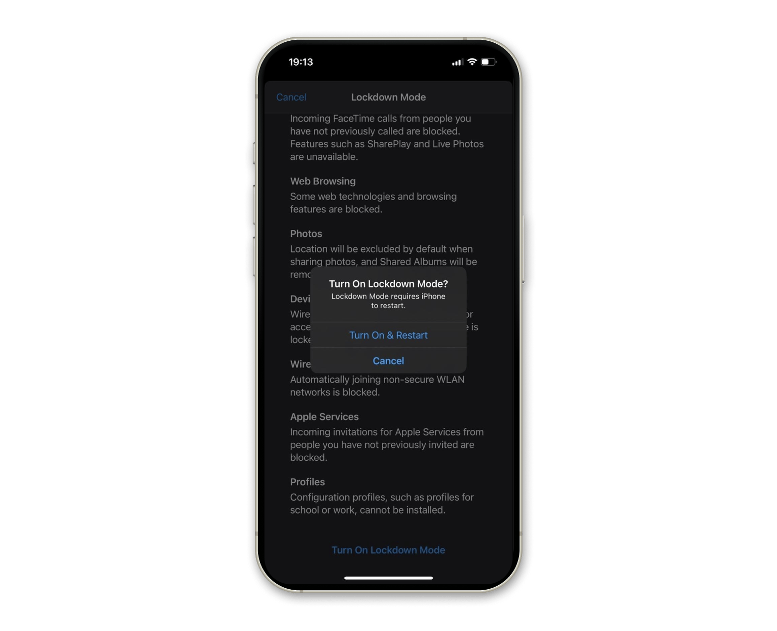 - Tap Turn On Lockdown Mode.