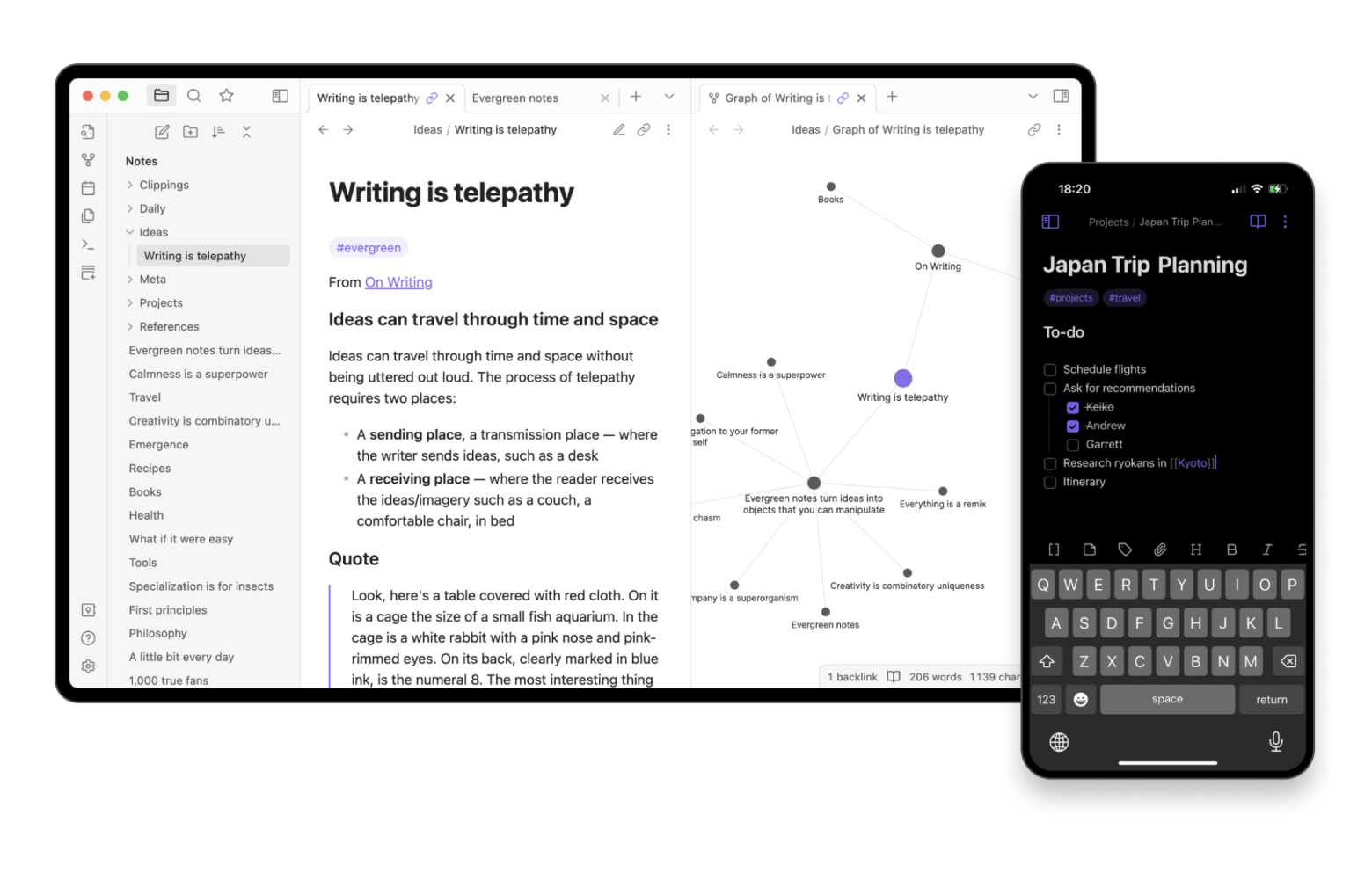 You can link ideas together to create a connected web of notes, explore those connections through a visual graph view, and expand the app’s capabilities with a wide range of community-built plugins.