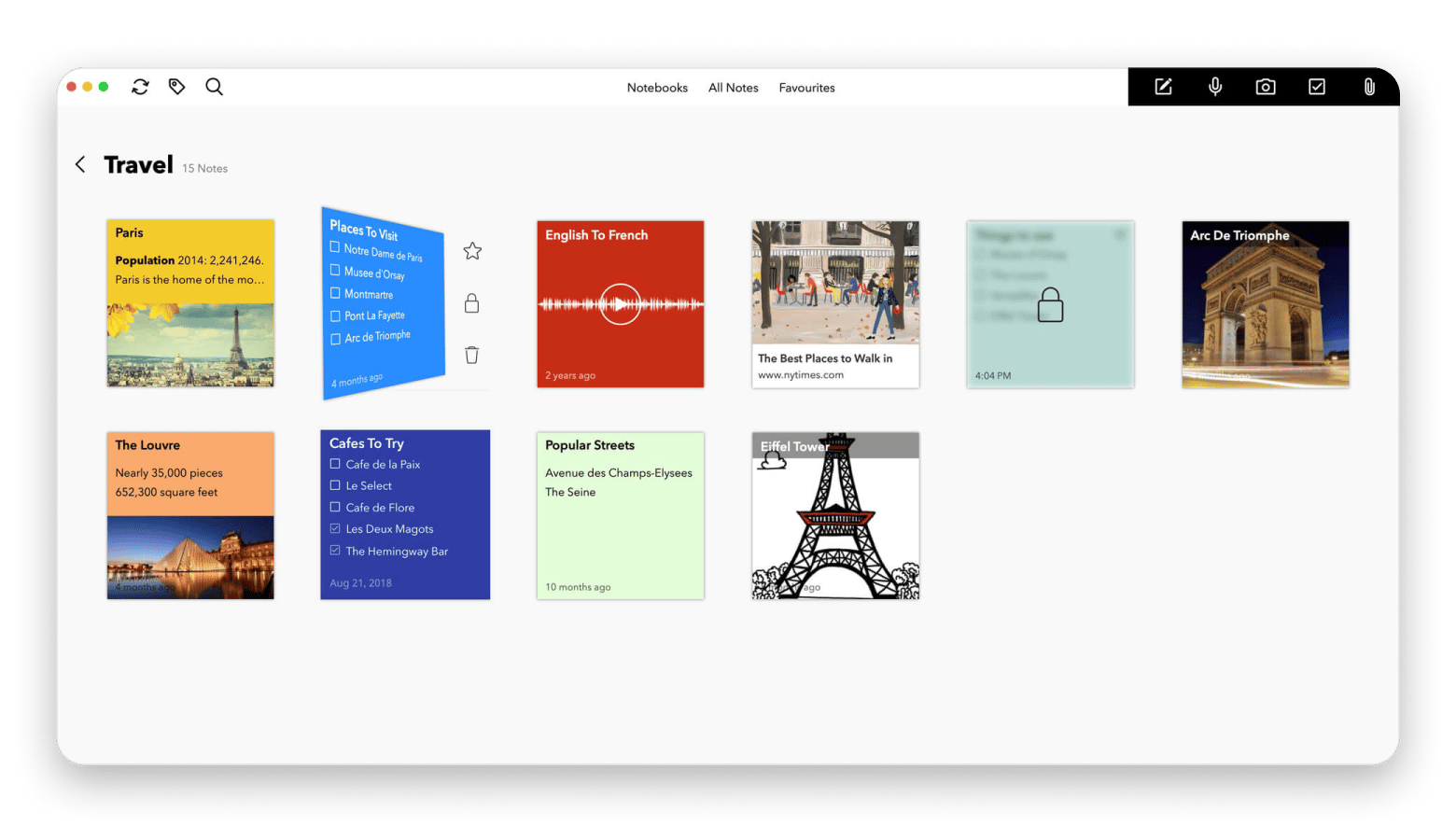 You can organize your notes into different card types like images, voice recordings, checklists, and text. Everything syncs across your devices, you can share notes for real-time collaboration, and even give your notebooks a personal touch with a range of beautiful covers.