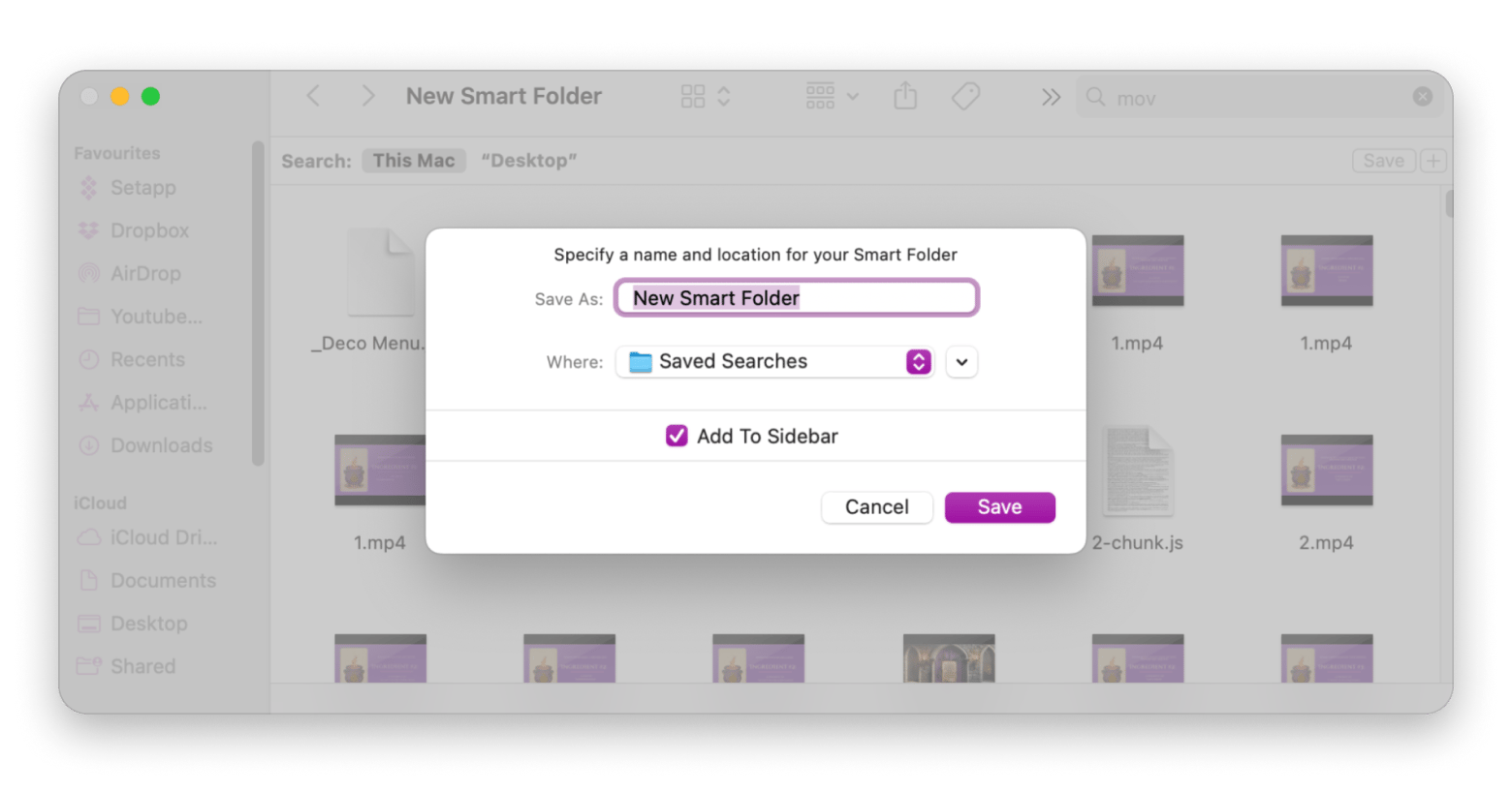- Click Save and name your Smart Folder.