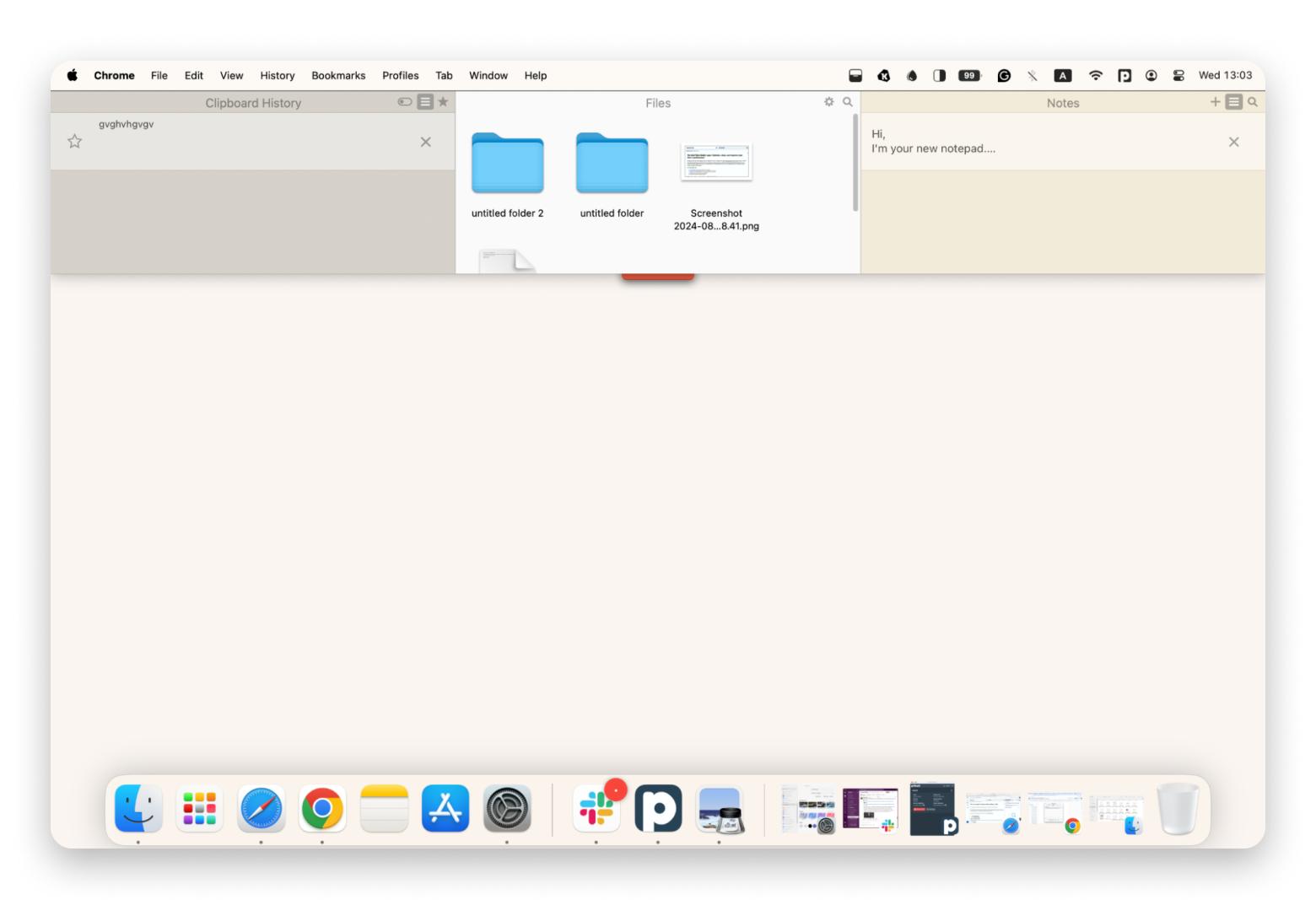I basically just drop all my text files straight into Unclutter instead of scattering them across my desktop. Then I can just swipe down from the top of my screen whenever I need something fast, and it’s all there.