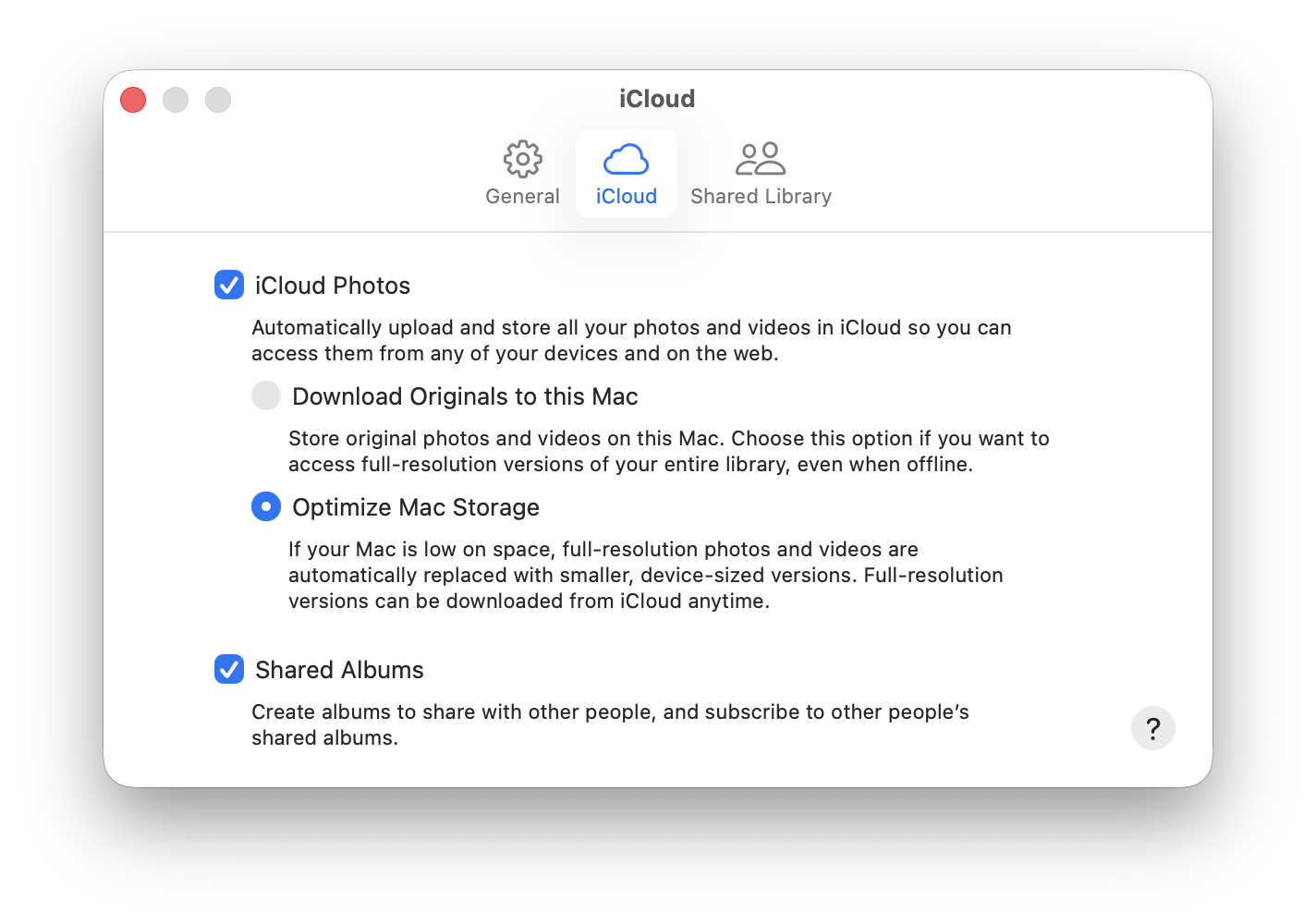 If you want to be able to share albums with other users, turn on the Shared Albums setting as well.