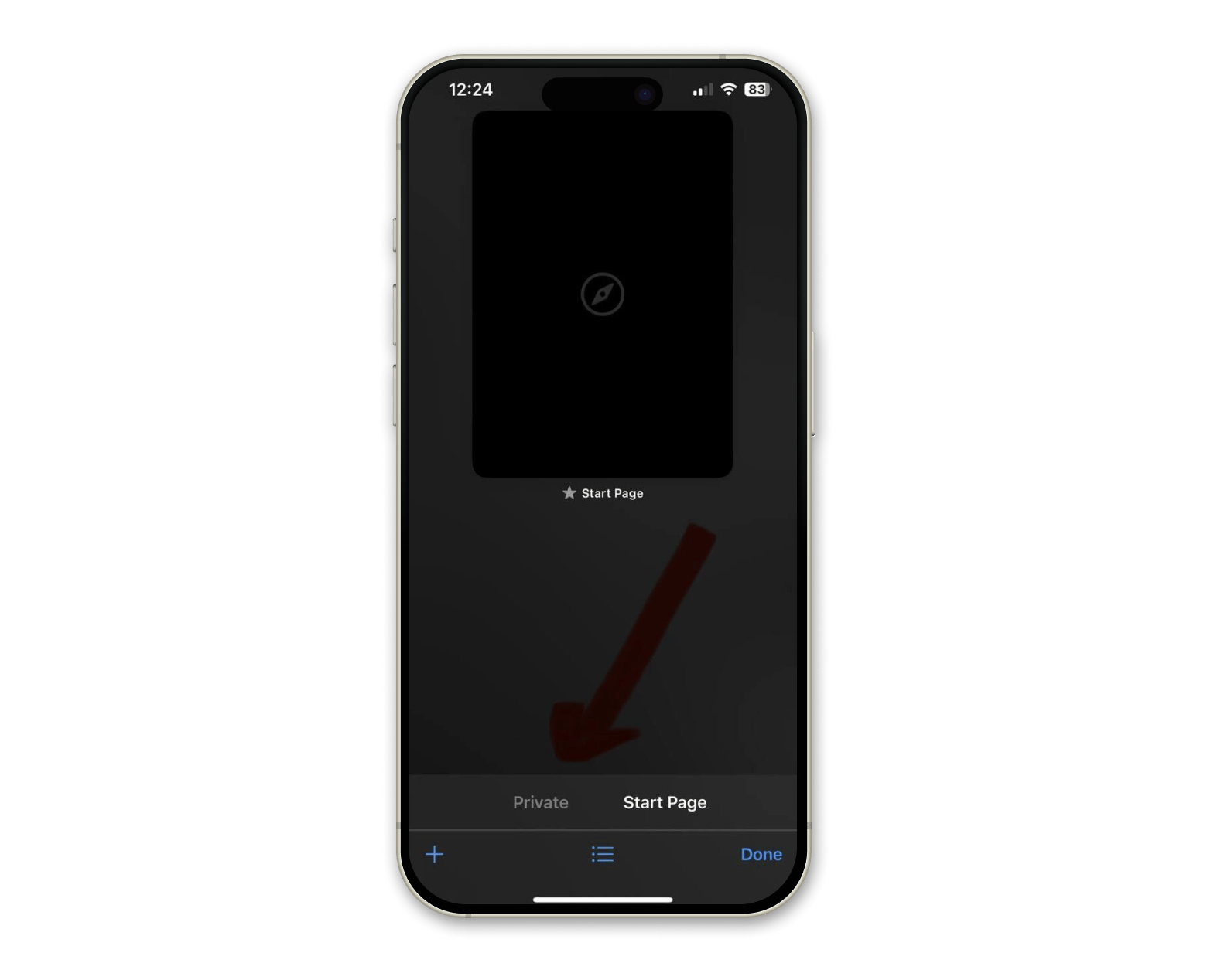 Tap the plus (+) icon to open a new private tab.