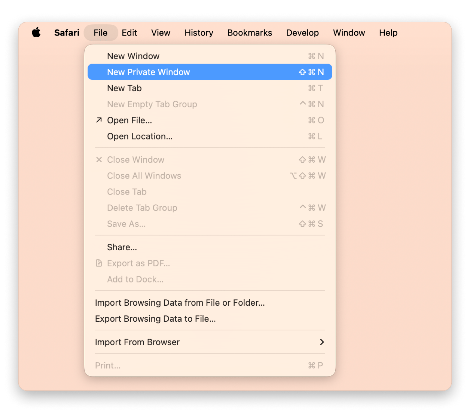 - Safari: Click File > New Private Window (or use Command + Shift + N)