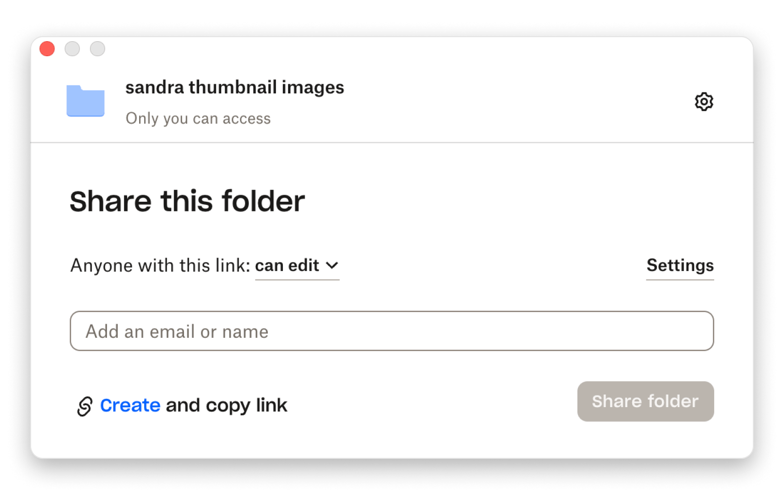- Set your sharing permissions and click Share folder.