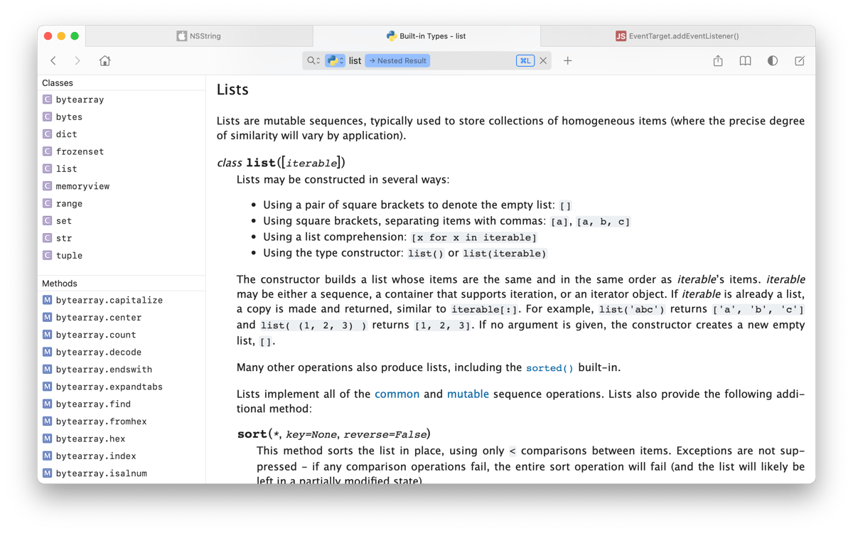 Dash è una delle risorse più preziose per gli sviluppatori: un pratico navigatore all'interno della documentazione di API con oltre 200 set di documenti pronti all'uso nonché un gestore di frammenti di codice per macOS. Con questa app, avrai sempre a portata di mano la documentazione giusta, con ricerca facile e disponibilità offline.