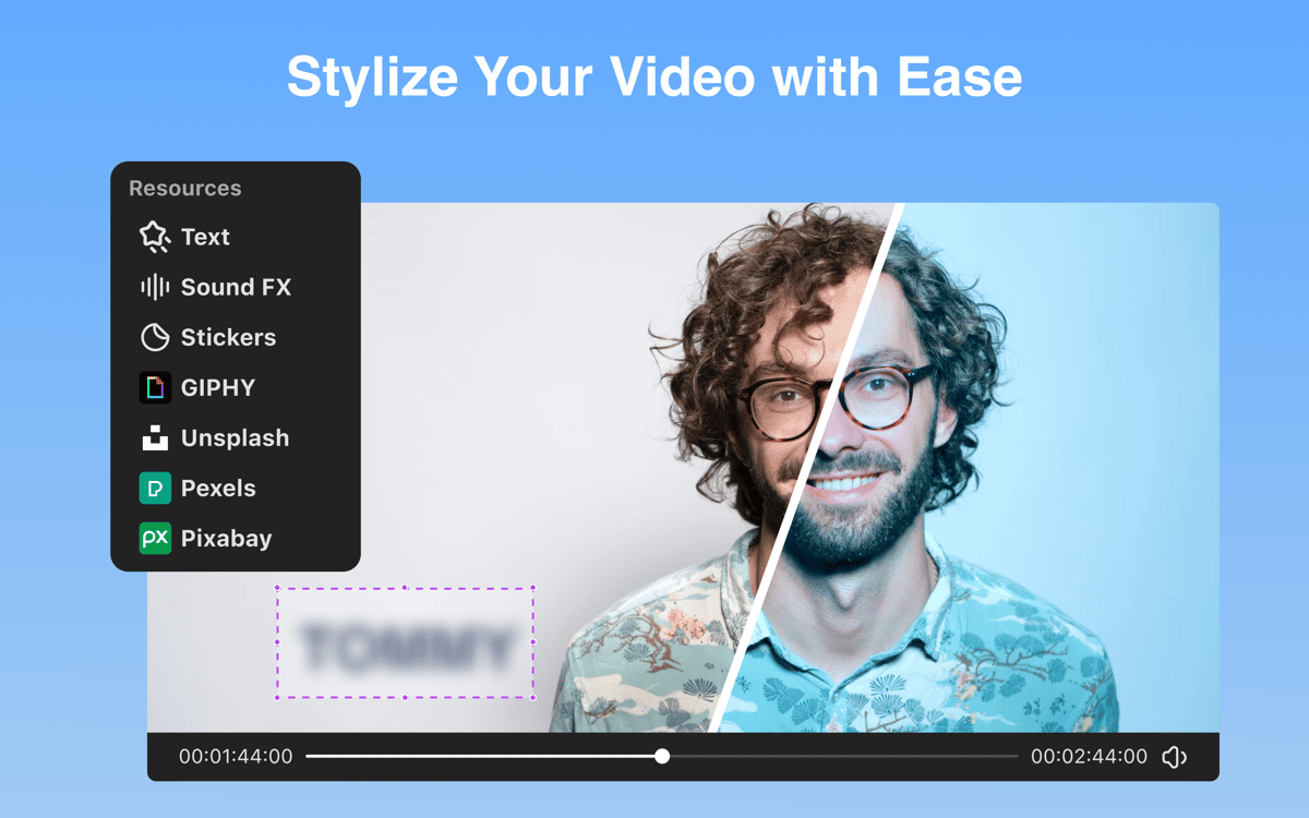 Filmage Editor offre una serie di strumenti per rendere i tuoi video più accattivanti. I fotogrammi chiave ti consentono di creare animazioni di titoli, adesivi, loghi e immagini con stile ricercato. Il rallentamento o l'accelerazione video ti permette di creare sequenze e montaggi di tipo cinematografico.