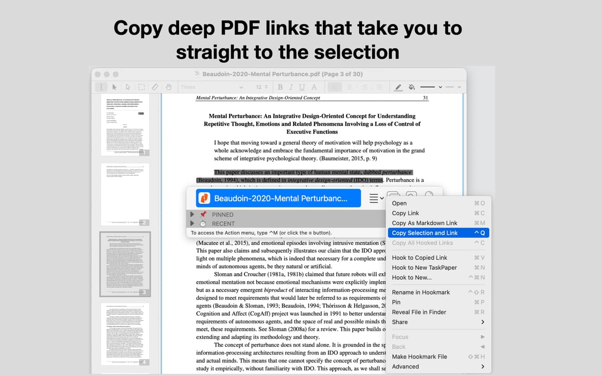 Cercare rapidamente ciò che ti serve all'interno di un PDF di una o due pagine può essere facile, ma quando il file ha decine o centinaia di pagine la situazione è ben diversa. Con Hookmark, puoi generare collegamenti a punti esatti dei tuoi PDF. Inoltre, i collegamenti che crei sono condivisibili, così potrai inviarli ai tuoi colleghi, se hanno accesso al file condiviso.
