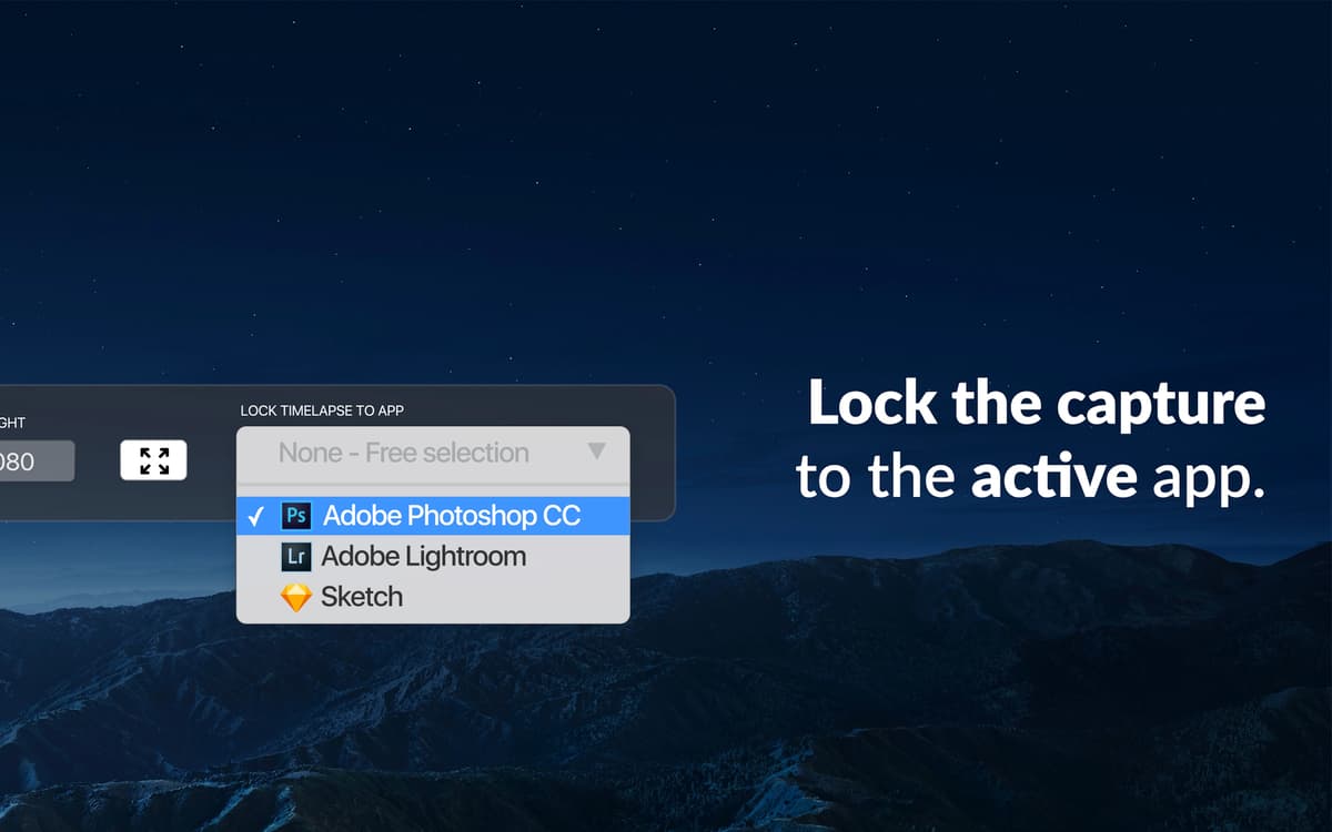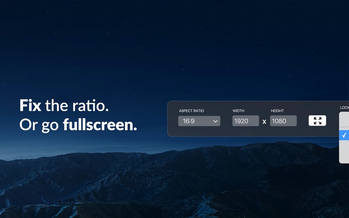 Puoi personalizzare l'area di cattura in pochi clic. Registra il tuo lavoro in modalità a schermo intero, modifica larghezza e altezza individualmente per inquadrature specifiche, o blocca le proporzioni. Hustl ti permette di evidenziare le parti più importanti del tuo time-lapse e presentare il tuo lavoro al meglio.
