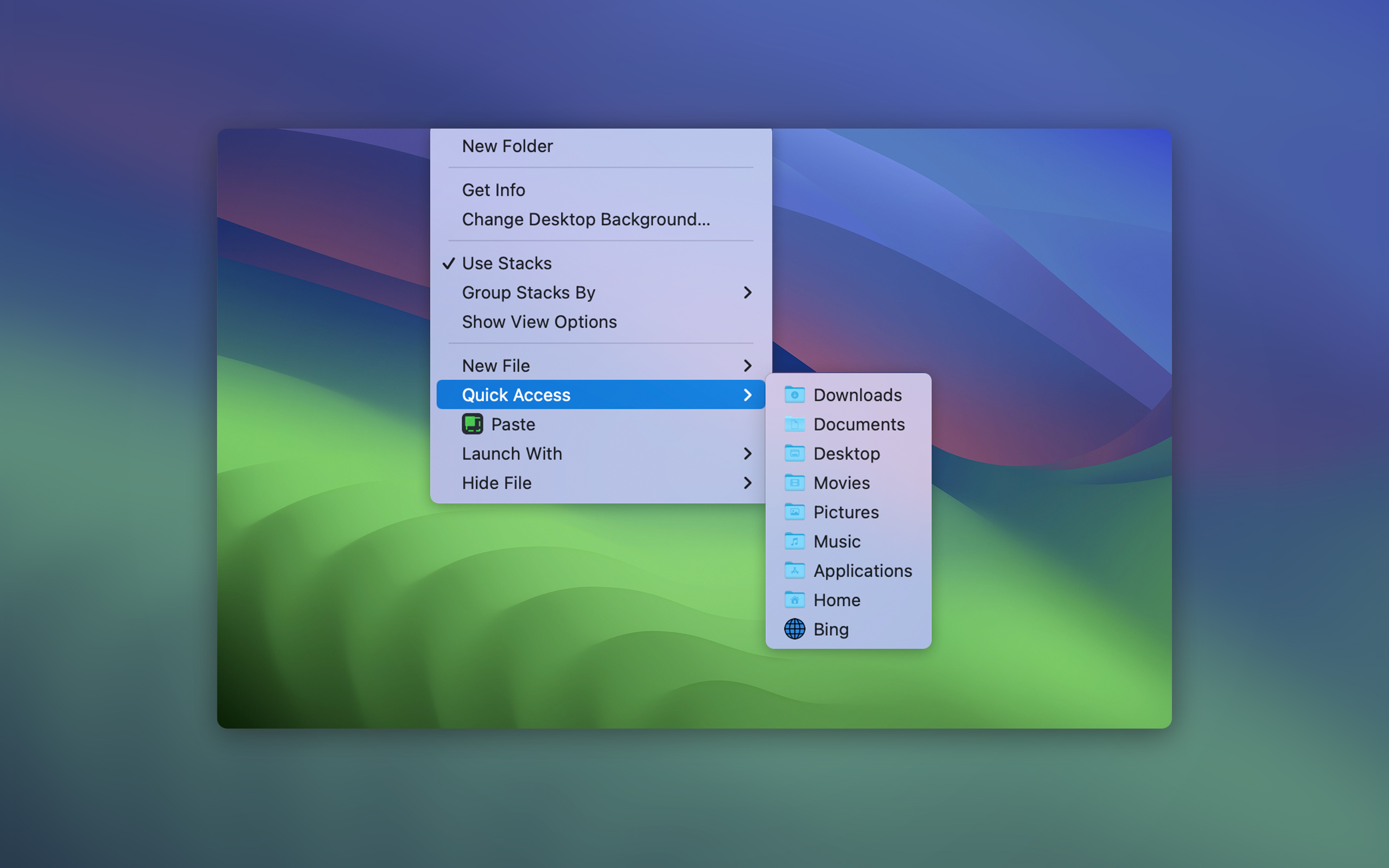Grazie all'accesso rapido, puoi potenziare il menu del clic destro con le app che usi più spesso. In questo modo avrai i tuoi strumenti di fiducia a portata di mano senza dover aprire il Finder o Launchpad. Aggiungi le tue app o pagine web preferite all'accesso rapido all'interno del tuo MagicMenu personalizzato.