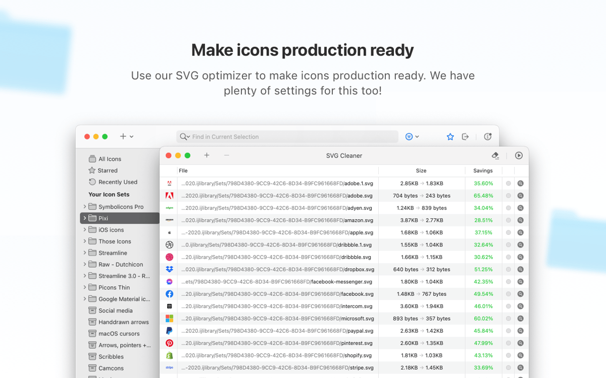 Potenzia le prestazioni trascinando all'istante le icone sulle app: IconJar è in grado di gestire icone di ogni dimensione, colore e formato. Grazie alla funzionalità QuickDrag, IconJar funziona perfettamente con le app che non sono dotate di supporto SVG nativo.