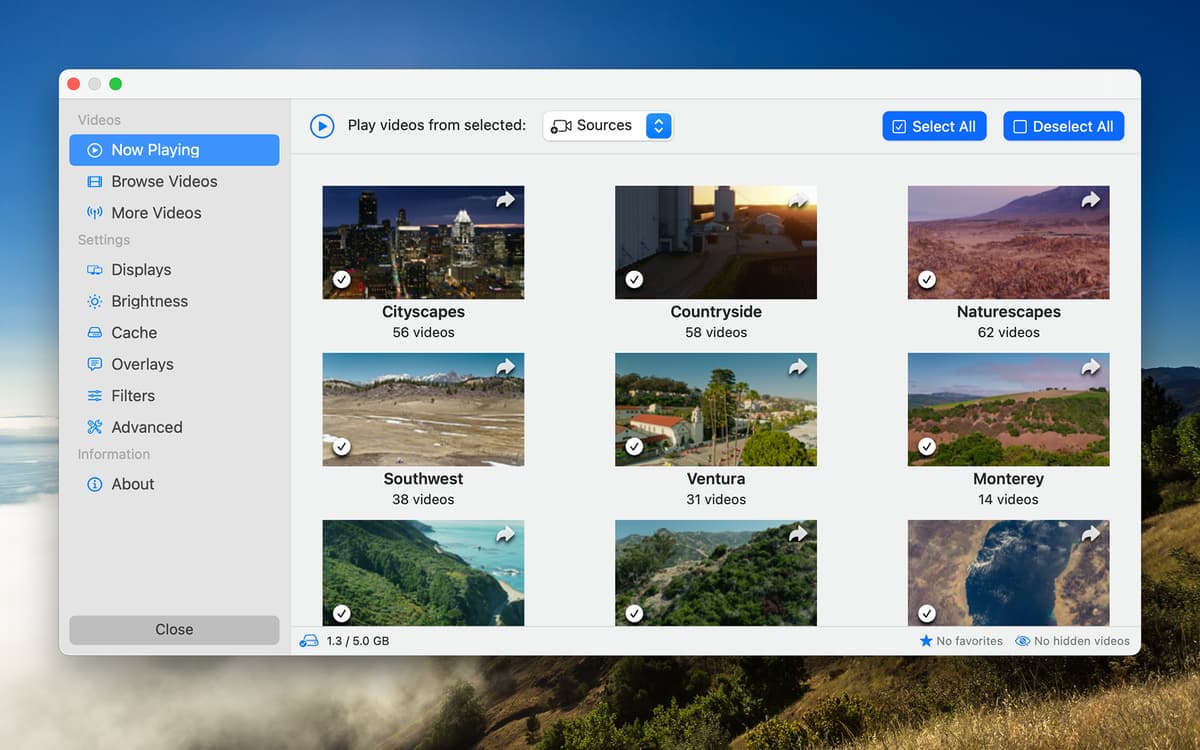 La raccolta video di Magic Window Air è incentrata in modo particolare su Big Sur e sull'isola di Santa Catalina, luoghi cari al tuo Mac. Ci sono però oltre 100 destinazioni da esplorare! Devi solo installare il plugin e l'app penserà al resto.