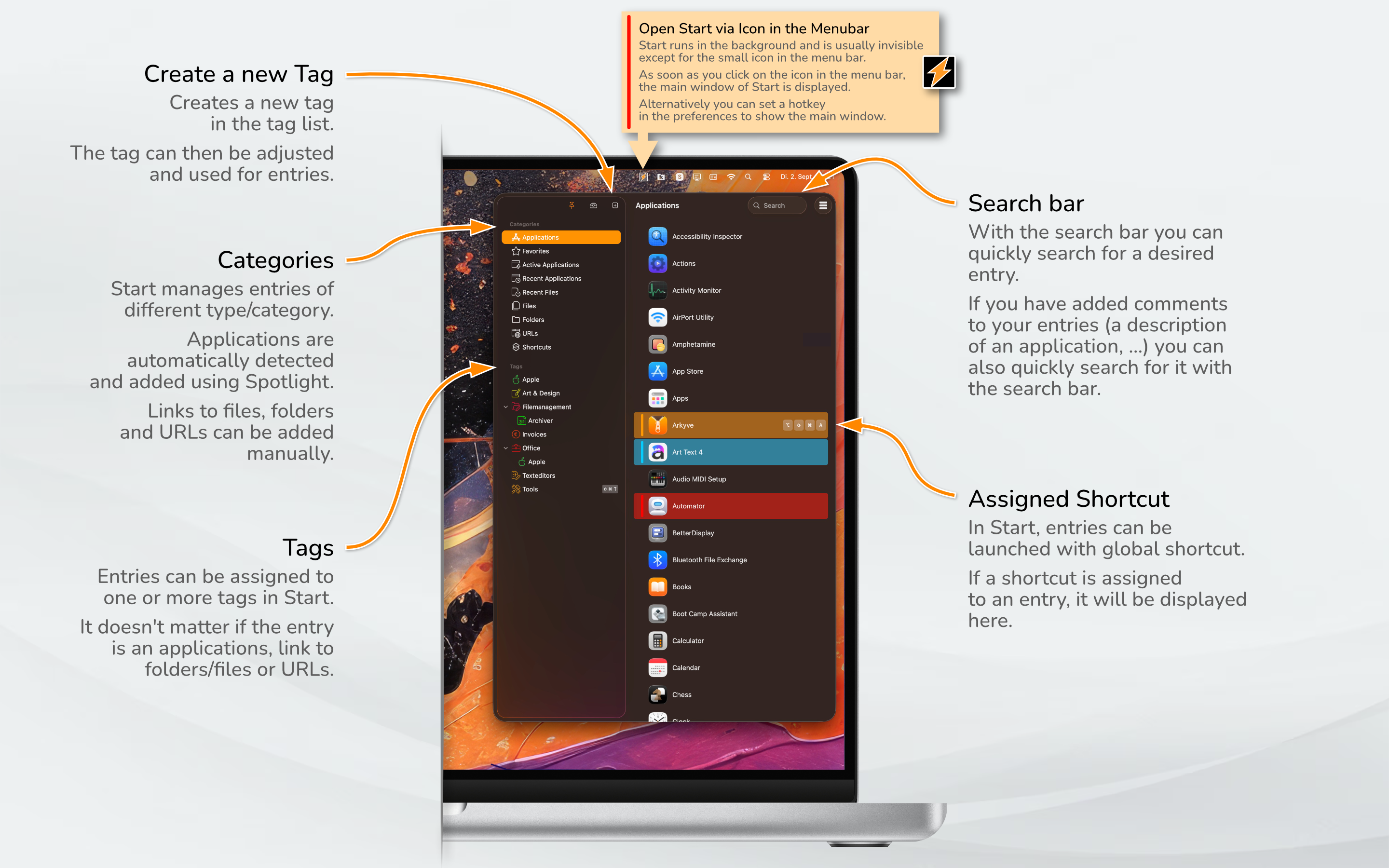 Il Dock non è perfetto: la barra che ti mette a disposizione non è abbastanza ampia per posizionare tutte le app che usi. Per fortuna però puoi metterle tutte in start. Questa comoda utility per la barra dei menu raccoglie tutte le app accessibili tramite Spotlight. Dalle applicazioni di default di Apple a quelle installate da te. Così potrai avviarle tutte comodamente da un unico posto.