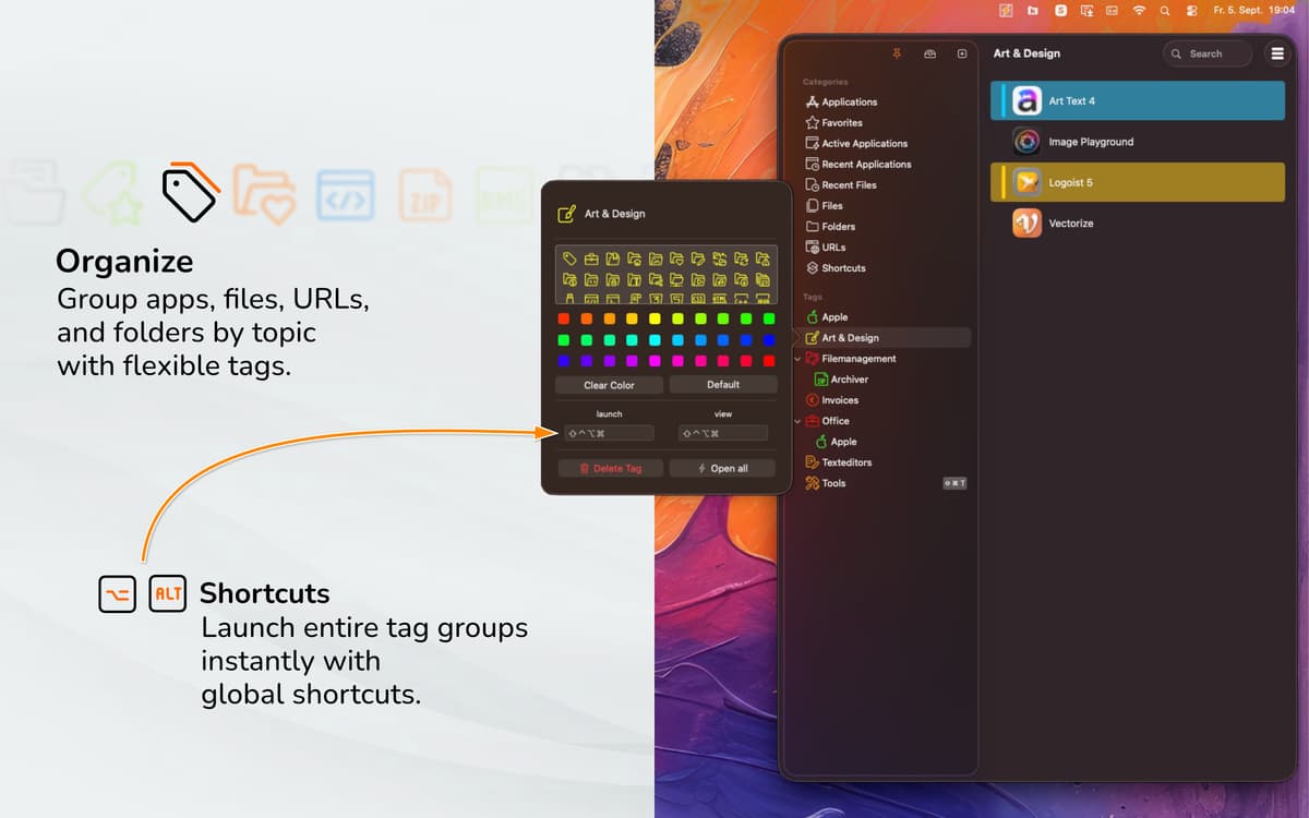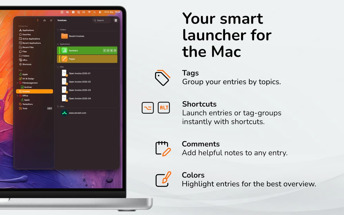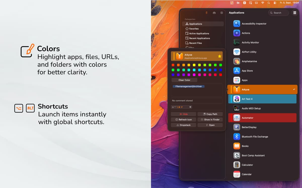 Ti serve ancora più velocità? Crea abbreviazioni da tastiera personalizzate e assegnale alle voci per ottenere un avvio dell'app ancora più rapido. Per crearle, fai clic con il tasto destro su un'app e inserisci l'abbreviazione nella parte inferiore della finestra. Da qui puoi anche modificare i colori della voce e aggiungere etichette o commenti.