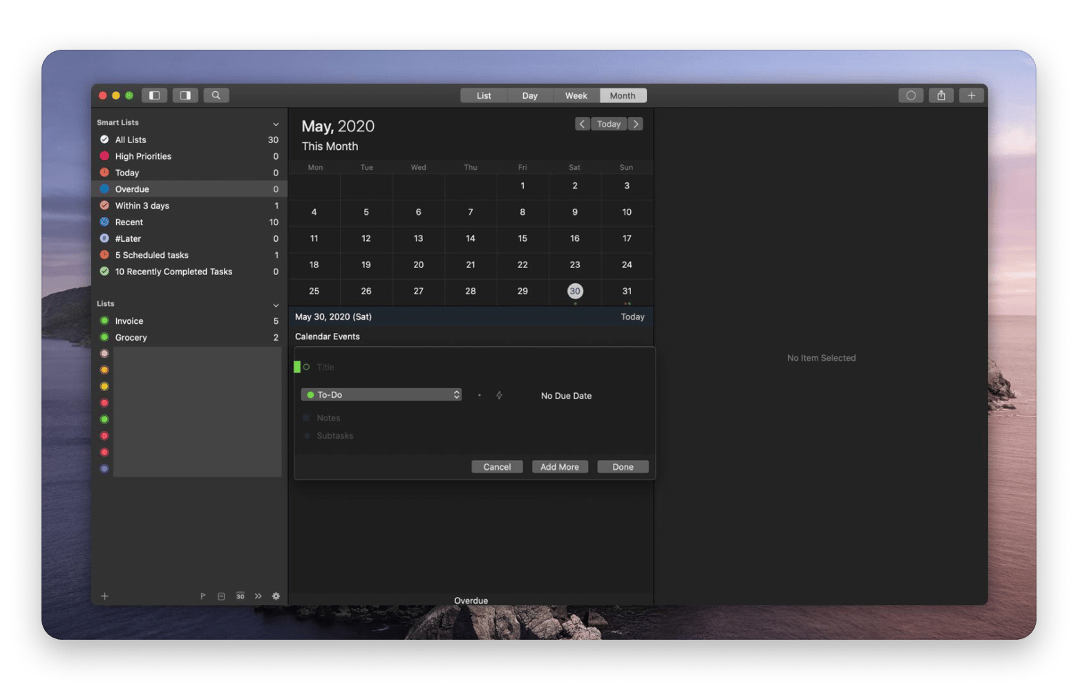 | GoodTask | Apple Reminders power users | No boards | Calendar view included | Task rules available | Setapp Membership from $9.99 + tax/mo |