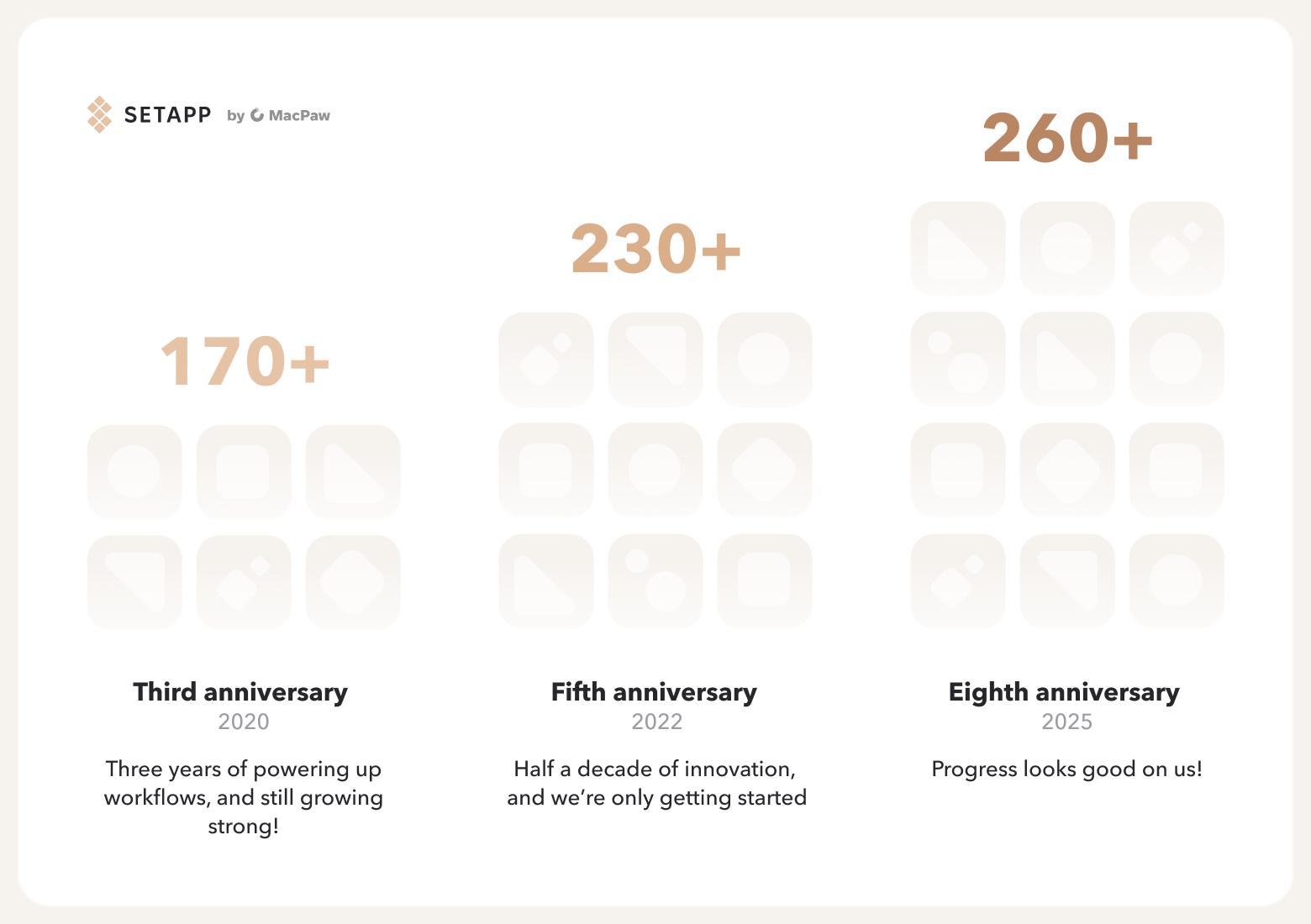 Here’s a quick look at some of the key milestones that shaped Setapp’s journey over the years.