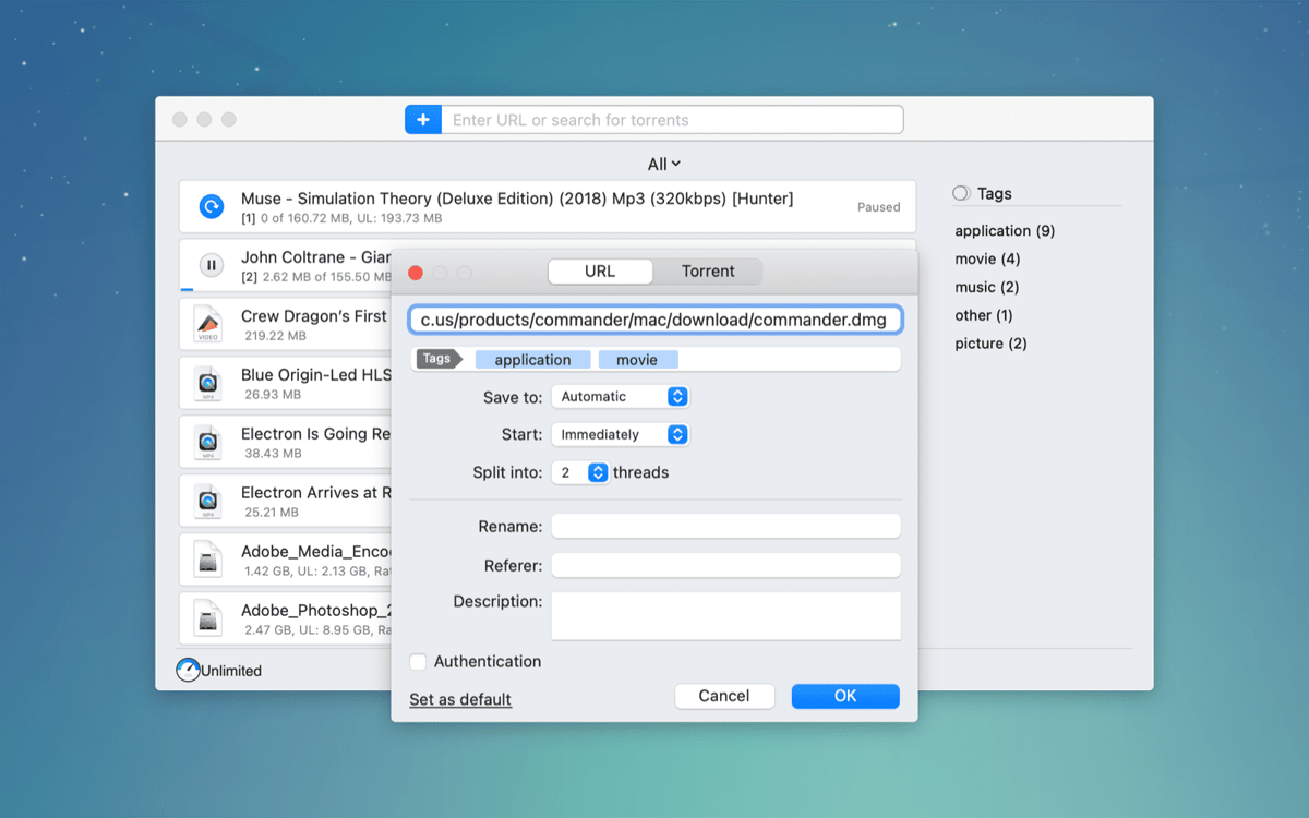 Any music you’re saving to your Mac via browsers can be picked up, stacked in Folx Pro, and then integrated in your iTunes playlist. Folx Pro can speed up your mp3 download by splitting it into streams. You can also download music by searching for it directly in the app.
