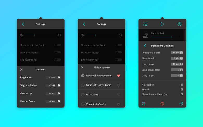 Усі налаштування прості та інтуїтивно зрозумілі. Ви самі вирішуєте, коли звуки мають розпочати відтворення і коли настає час закінчувати. Розпочати роботу з програмою також дуже легко. Звуки відтворюються у безперервному циклі, тож після налаштування вам уже ніщо не заважатиме.